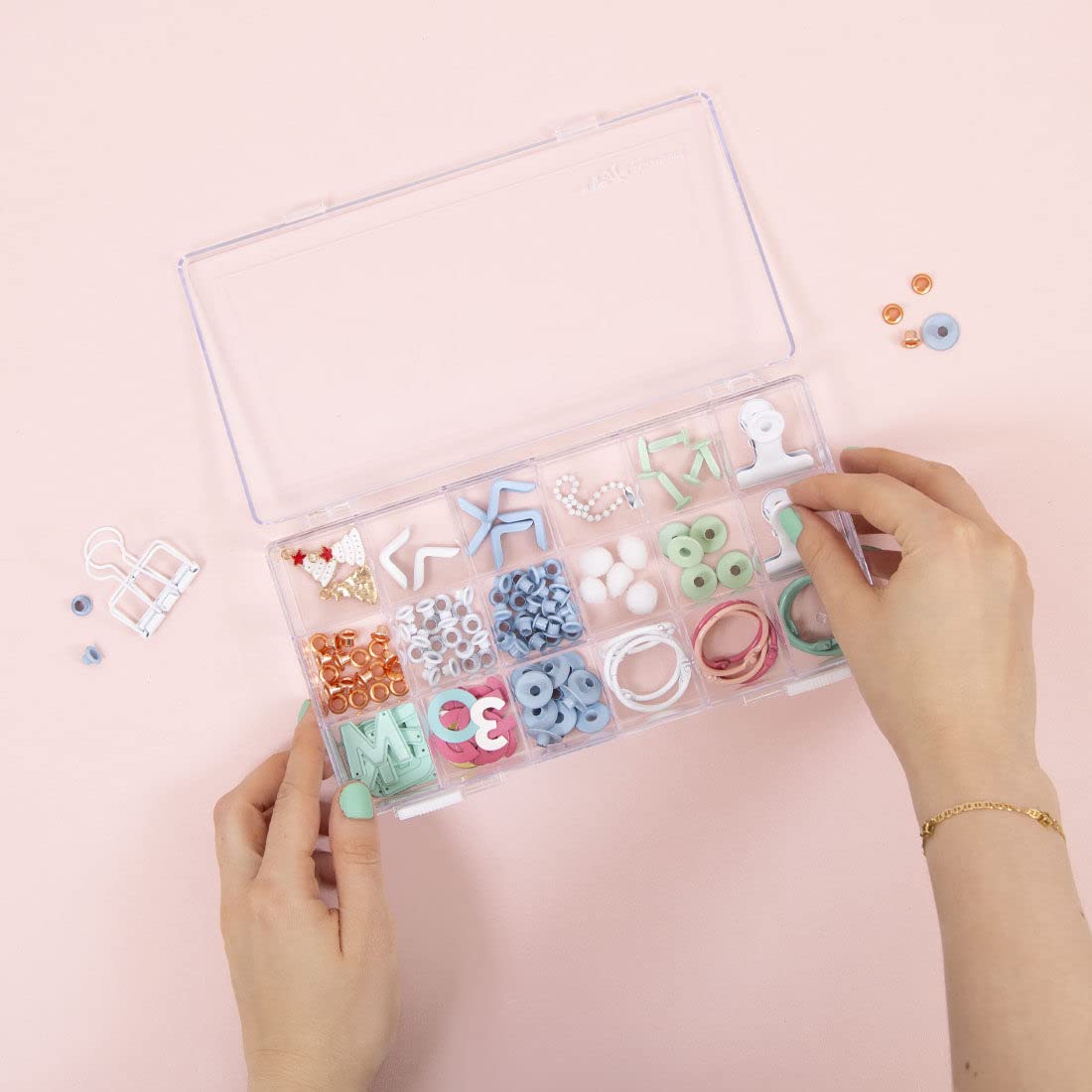 - 📄 DESCRIPTION: transparent box to store and organize all kinds of small ornaments or small pieces. It is ideal for organizing accessories that we use in our scrapbooking and craft projects such as brads, sequins, eyelets, beads, pompoms and much more.