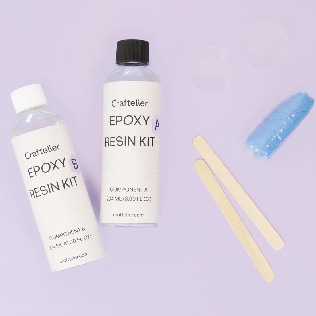 - COMPLETE EPOXY RESIN KIT FOR BEGINNERS: Includes two 6.9 oz bottles of epoxy resin (component A and B), measuring cups, protective gloves, and wooden sticks for mixing.