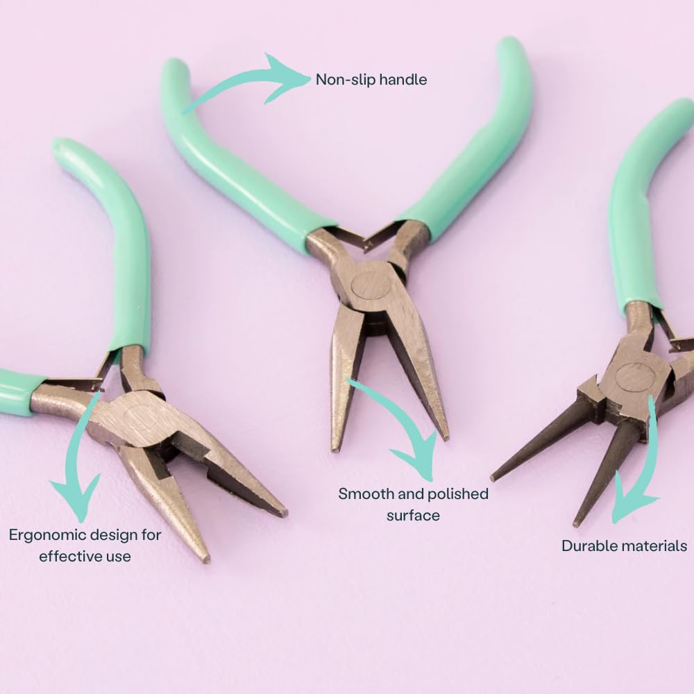 - COMPLETE PLIERS SET: Includes flat nose, round nose, and wire cutters pliers for jewelry making, beading, and wire wrapping, designed with professional-grade precision for hobbyists and artisans
