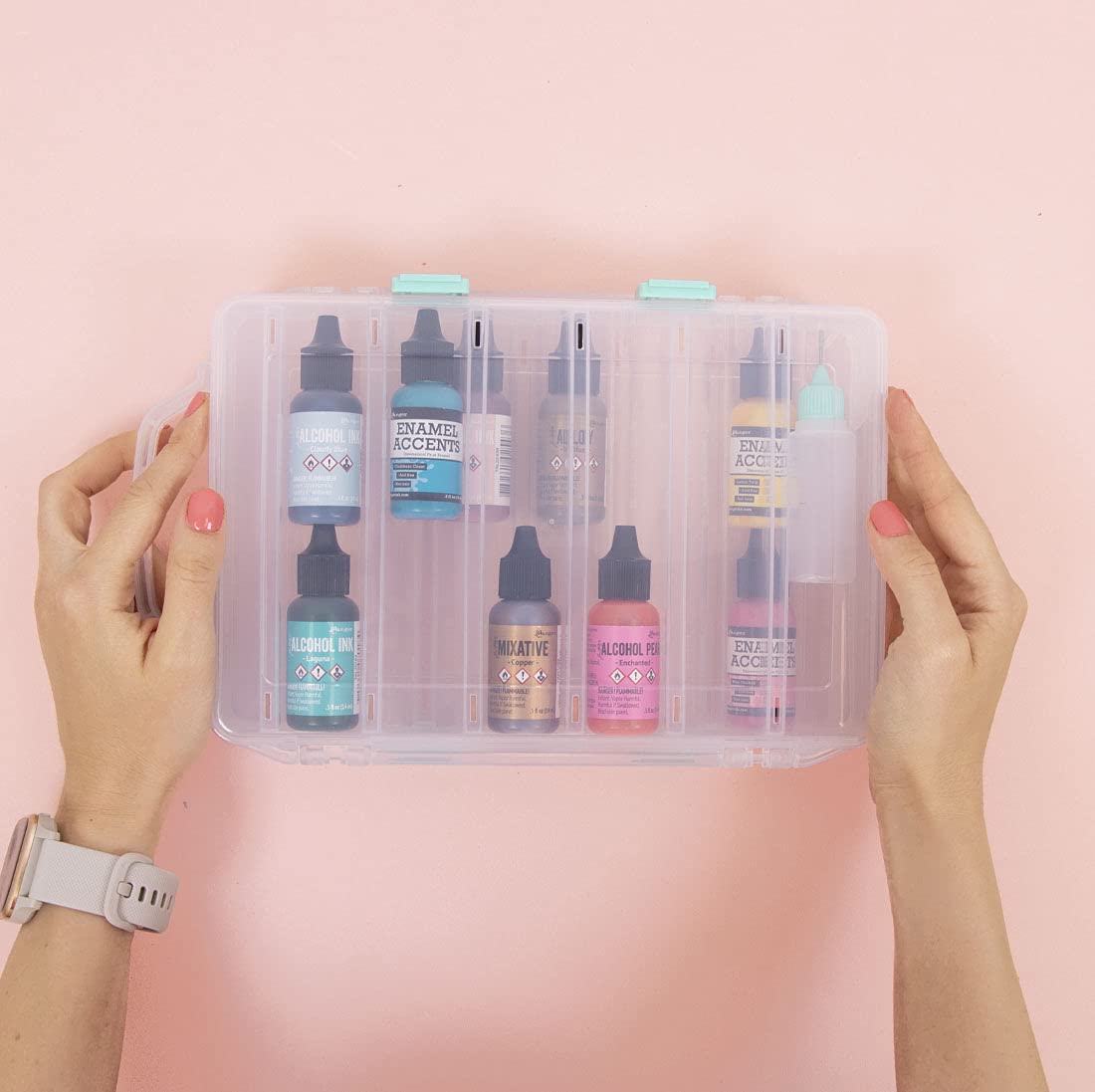 Craftelier - Portable Clear Case with Handle for 2 Tray Alcohol Inks with 24 Paint Pots Capacity | Approximate Dimensions 23.5 x 15.5 x 4.7 cm - (9.25" x 6.10" x 1.85")