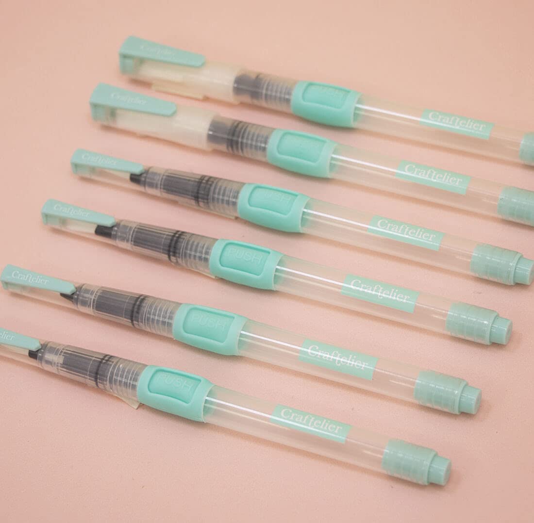 Craftelier - Set of 6 Waterbrushes for Watercolour, Calligraphy, Cardmaking, Lettering or Mixed Media and Other Crafts | 3 Fine Tip + 3 Wide Tip | Turquoise Colour
