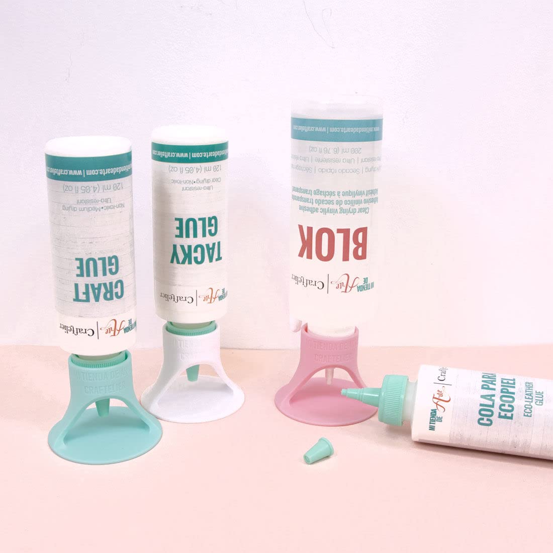 Craftelier - Set of Glue, Glue and Adhesive Tube Holders - Approx. Diameter: 6.1 cm Base, 2.9 cm Top Nozzle and 1.5 cm Bottom Nozzle - Color: Turquoise, White and Pink
